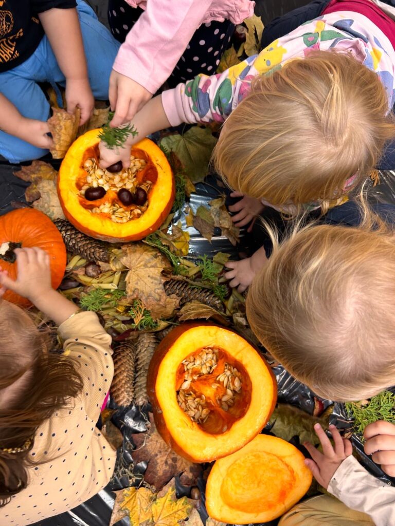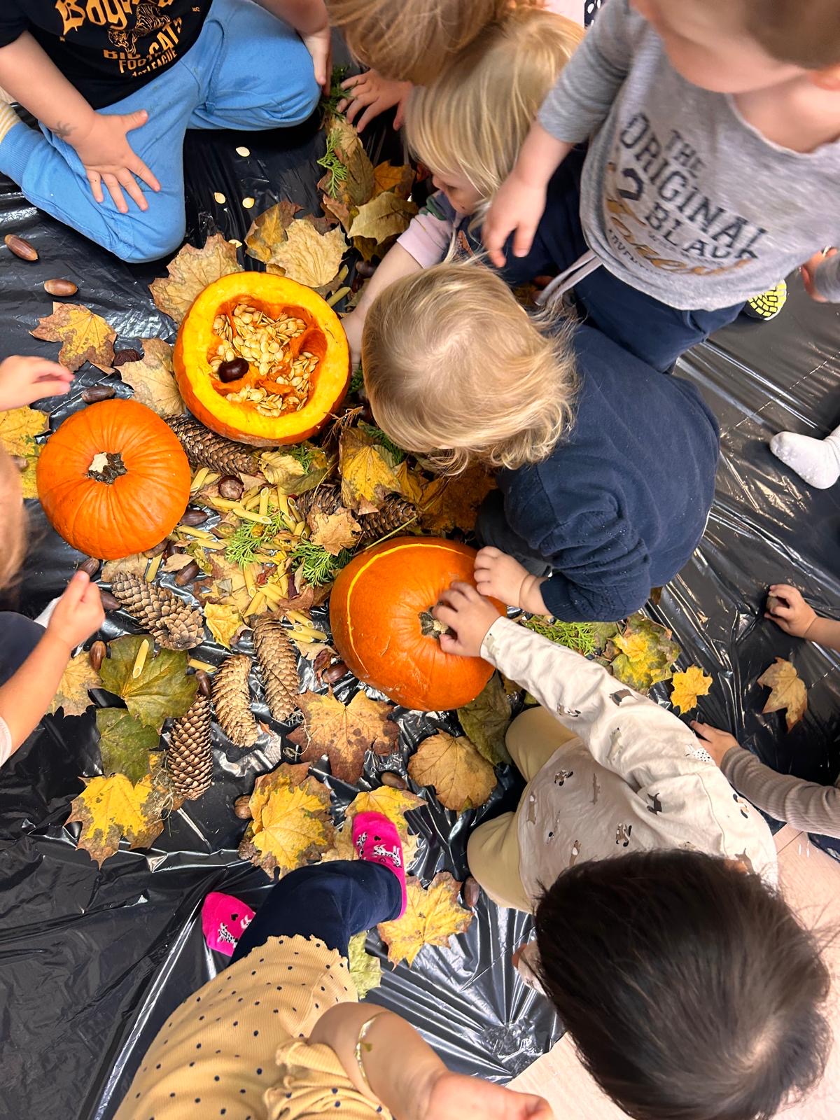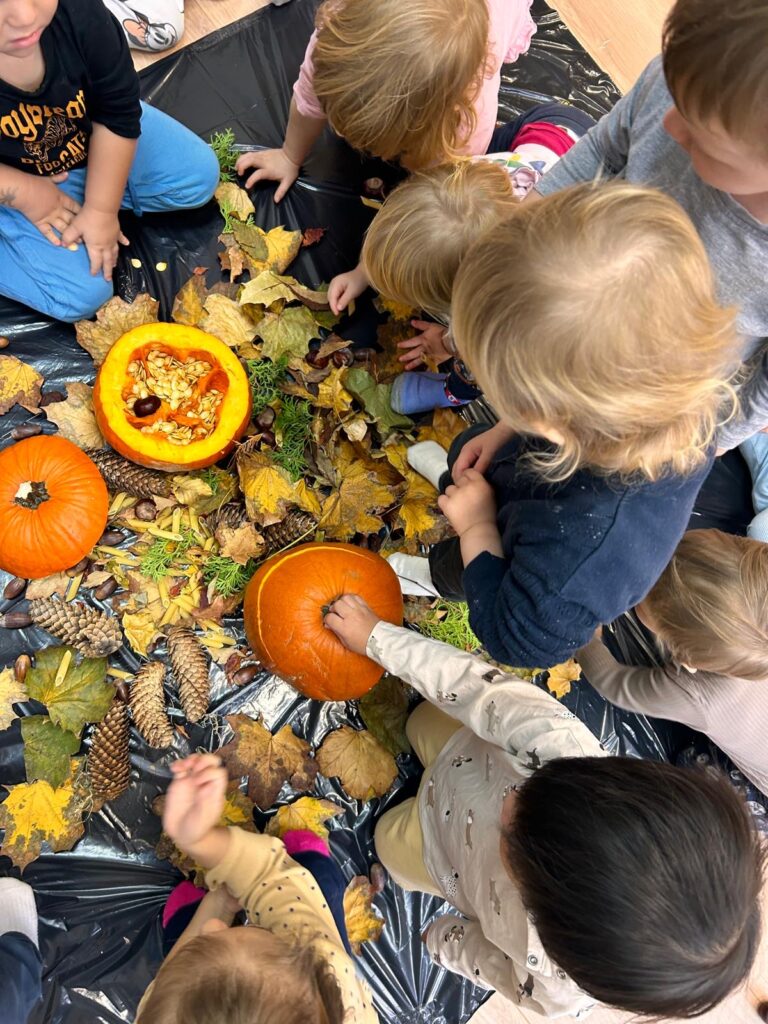 Our recent sensory activities allowed the little ones to explore the richness of autumn’s natural treasures – all in an atmosphere of joy and play. The children had the chance to discover pumpkins, pinecones, and a variety of leaves, bringing lots of sensations and opportunities to develop their senses.