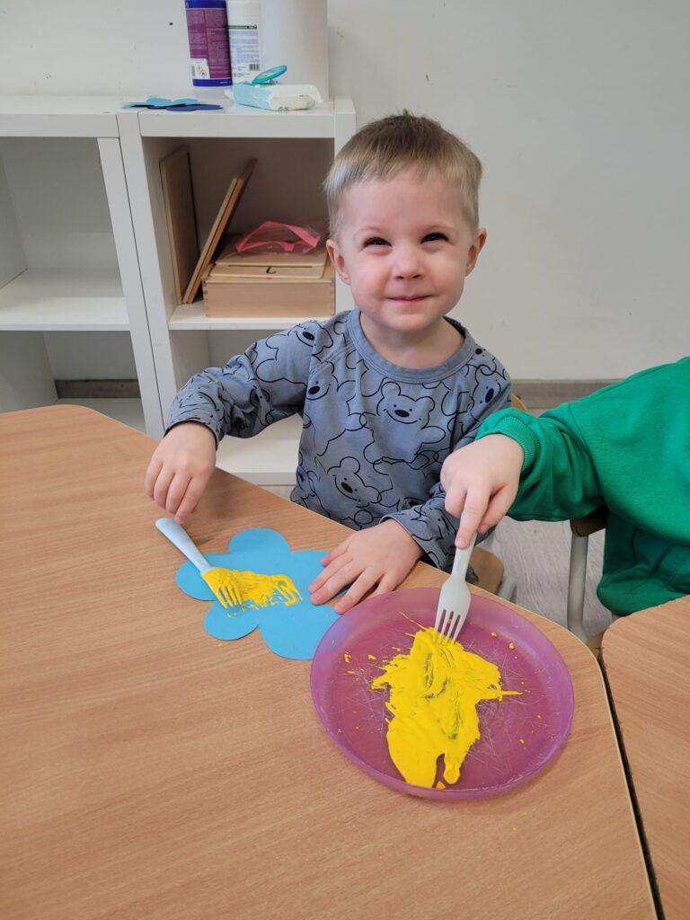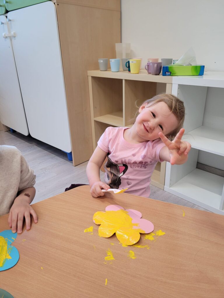 Wraz z nadejściem wiosny w naszym żłobku i przedszkolu zrobiło się kolorowo i radośnie! Dzieci z wielkim zaangażowaniem wykonują wiosenne prace plastyczne – pojawiają się pierwsze kwiaty, motyle oraz słoneczne pejzaże.